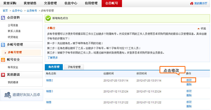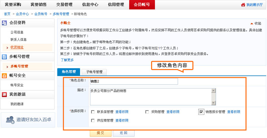 当采购人员工作内容发生变化时,在百卓设置的角色权限和描述也需要做相应的修改。