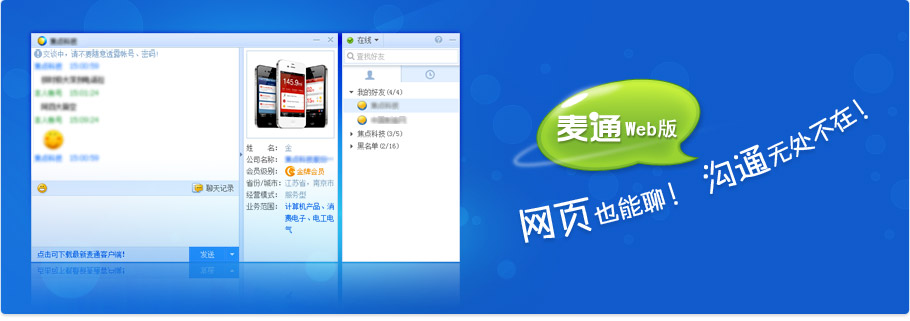 无需下载安装,登录网站会员中心即登录麦通网页版,沟通更便捷